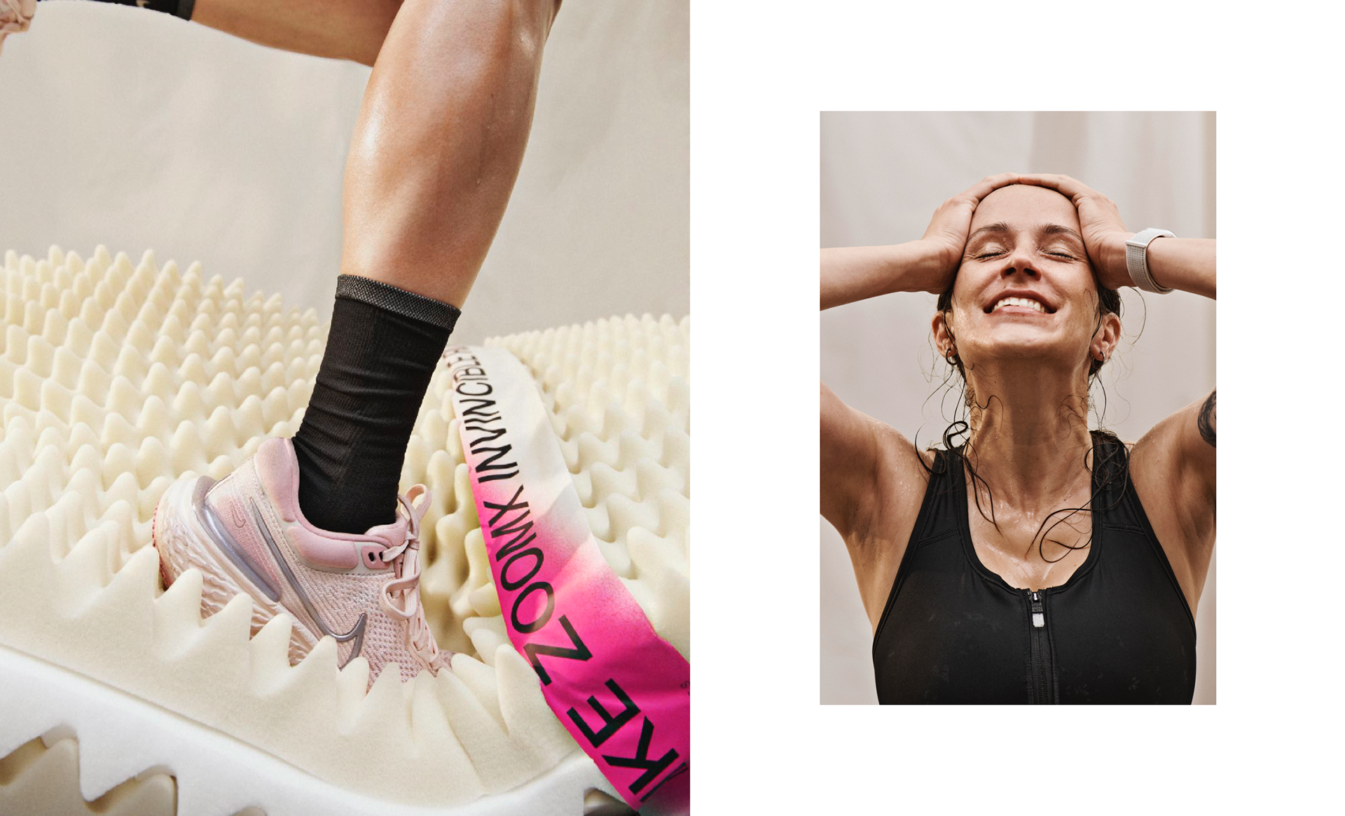 Carrying the baton from previous seasons while creating a fresh approach, the Fa21 Run Fearless campaign focused on the Nike React Infinity and Nike ZoomX Invincible running footwear. With the innovation difference between the footwear being spring-like foam for Infinity and cushioned foam for Invincible, I aimed to capture a sensory approach for the season. This was achieved by defining two different content captures, that being an authentic running capture supported by imagery showcasing the sensory feeling. The duality of the footwear was a constant concept through-out the campaign, from color to using different types of layered foams to represent the two different sensations. I aimed to bring a freshness to the graphic language built upon previous seasons, crafting footwear graphics inspired by CAT scans and using an analog inspired layering approach. Photography captured by Paola Kudacki.