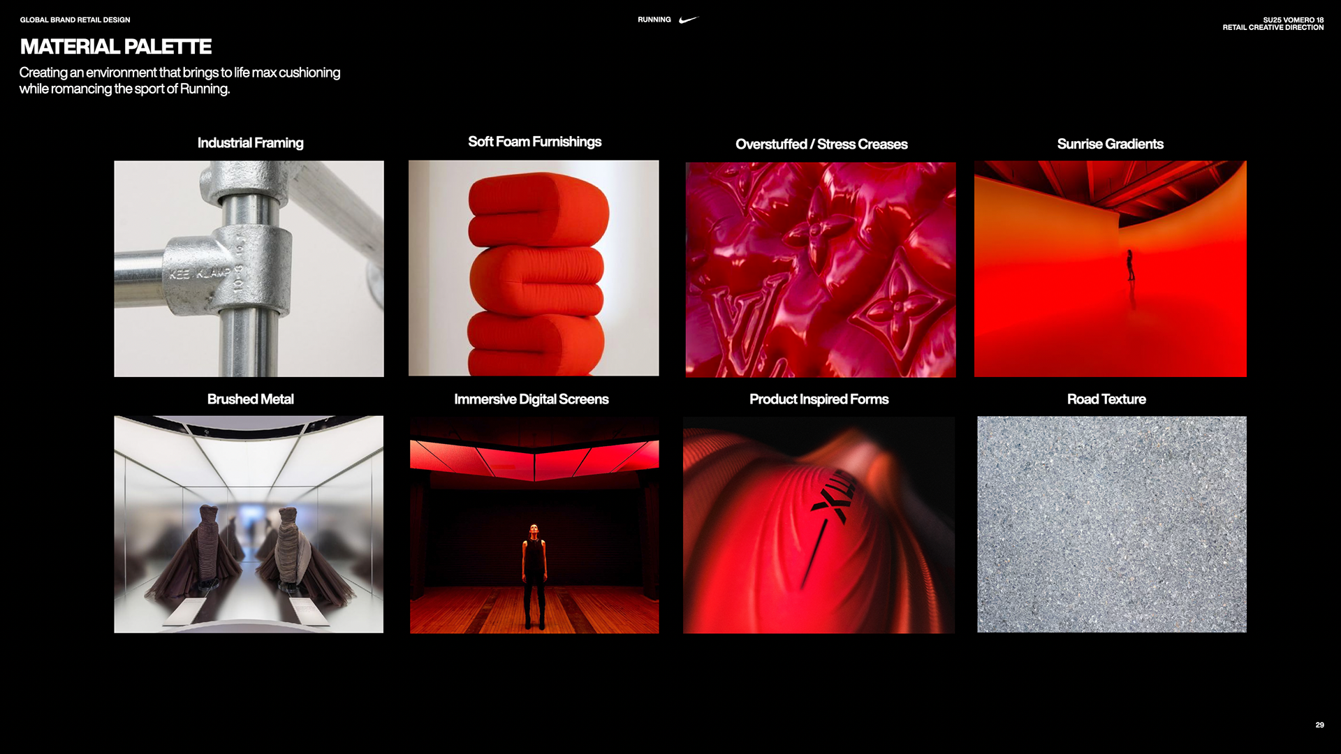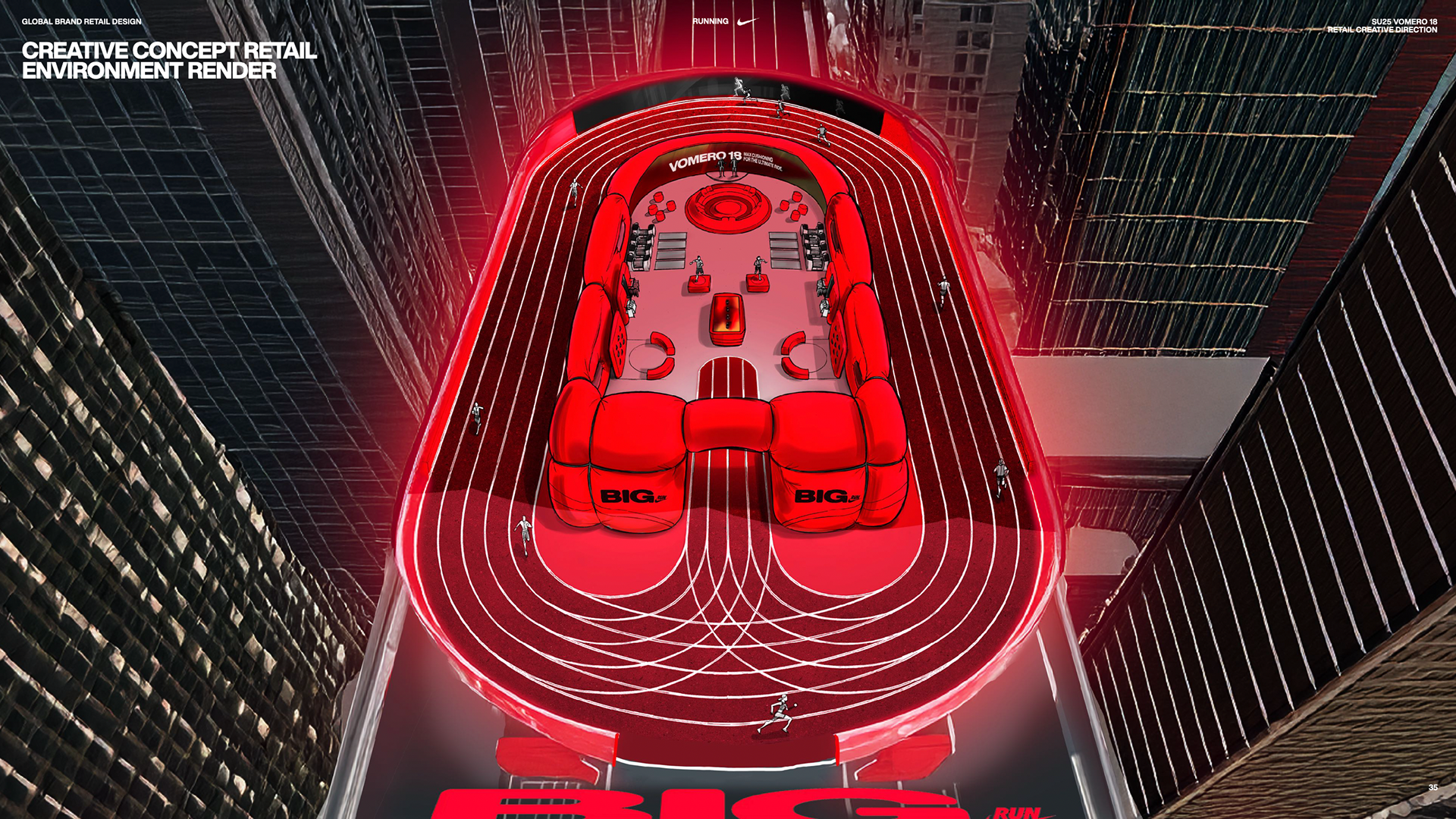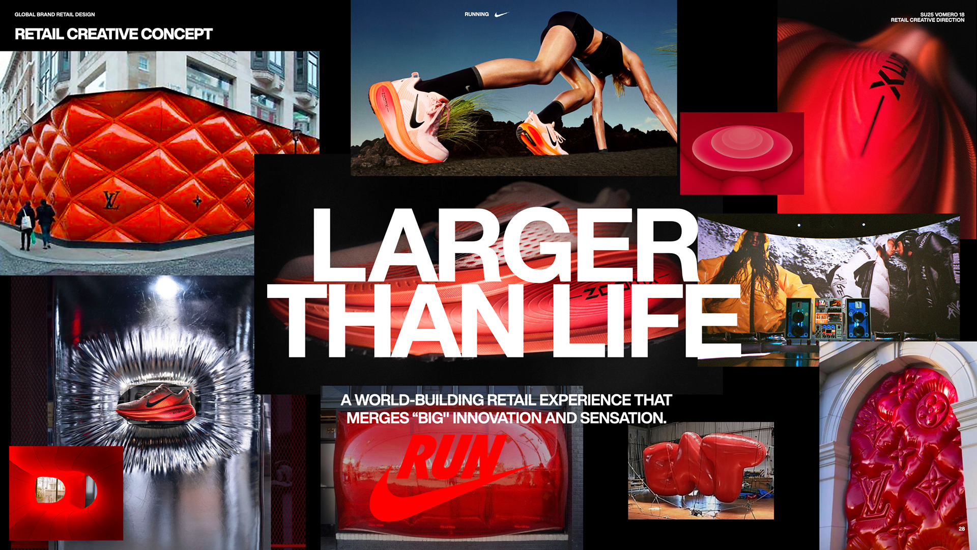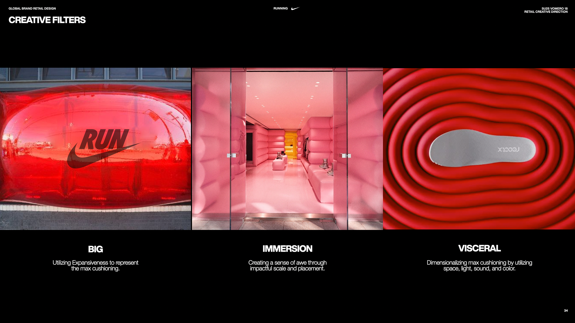 To introduce Vomero 18, Nike’s largest foam stacked footwear, consumers engaged in a multi-sensory retail experience focused on merging “BIG" innovation and sensation by using soft-to-touch visual cues, large-scale build outs and innovation storytelling. Vomero 18 provides the runnner with maximum cushioning for the ultimate ride.